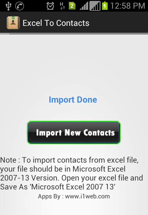 7. También puede importar contactos desde un archivo de Excel que se ha exportado desde Outlook a su teléfono.