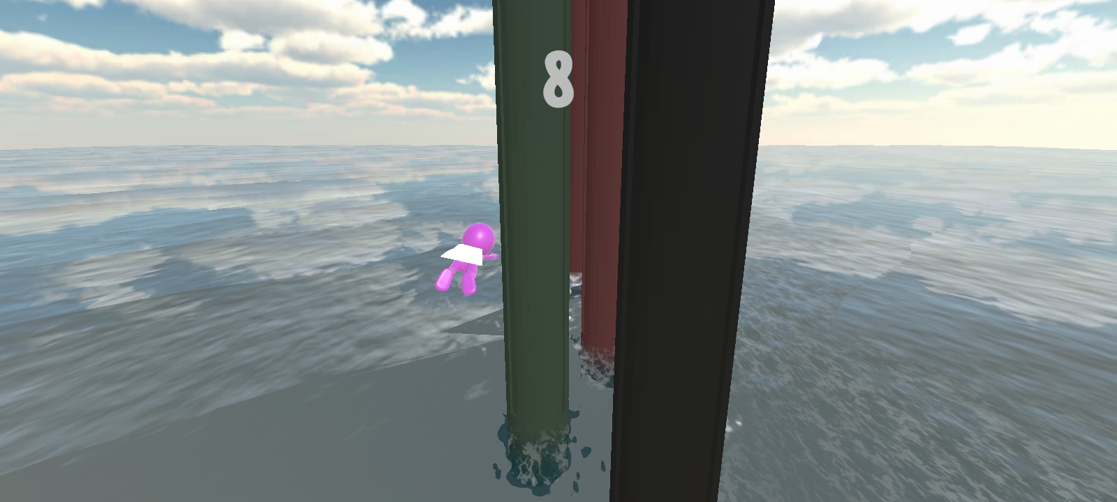 Evita golpear los pilares giratorios y vuela por el mar