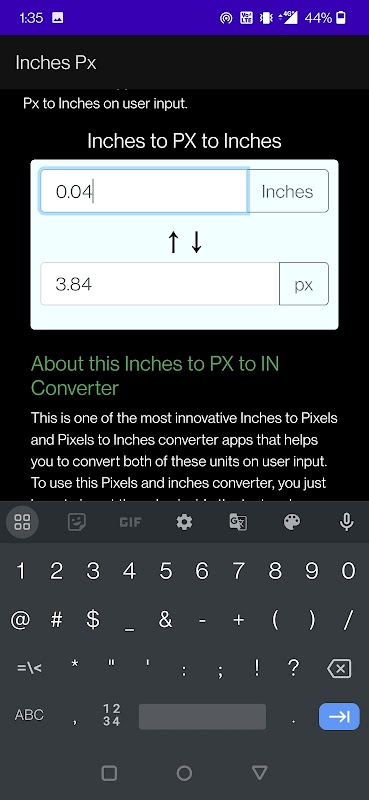Información de Inches to PX (pixels) APK