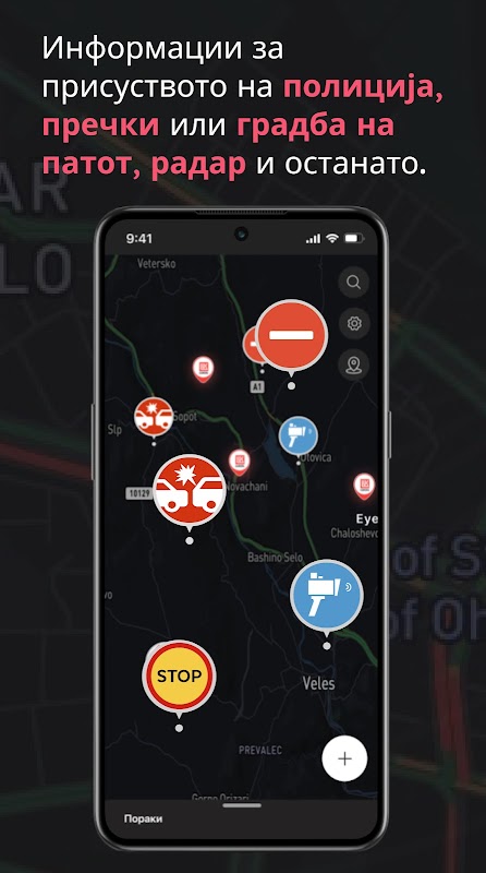 реално време за сообраќајот. Дознајте каде има полицијата, несреќи или пречки на пат за