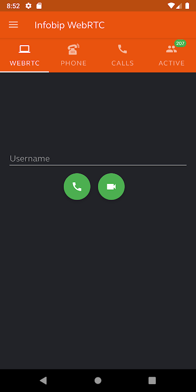 Infobip WebRTC le permite hacer llamadas telefónicas en tiempo real a otro usuario de la aplicación. También puede llamar a un número de teléfono regular.