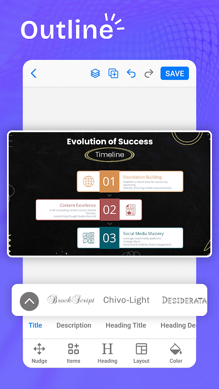La aplicación Infographic Maker proporciona un conjunto completo de herramientas y plantillas editables para ayudarle a visualizar sus ideas y datos de una manera visualmente atractiva. Ya sea que sea un profesional de negocios, un educador o un creador de contenido, Infographic Maker tiene todo lo que necesita para crear infografías llamativas.