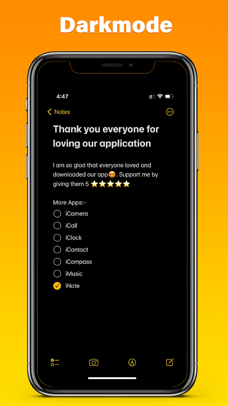 Feel free to use iNote - iOS 14 Notes for iPhone & iPad, iPhone style 14, share with families and friends and don't forget to rate our app 5 stars if you find I Notes useful.