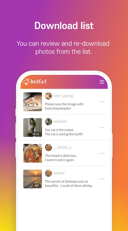 InstGet es una aplicación que permite a los usuarios guardar fotos y vídeos fácilmente.