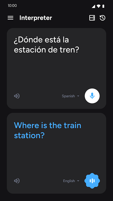 La app Interpreter es tu intérprete de bolsillo que escucha tu voz y la traduce a tu idioma preferido. Ya sea que estés viajando, aprendiendo un nuevo idioma o comunicándote con alguien al otro lado del mundo, simplemente habla y deja que la app haga el resto. Rápida, precisa y súper fácil de usar: ¡solo toca el micrófono y empieza a hablar!
