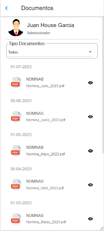 - Consultar los documentos (nóminas, cursos realizados,etc...) registrados en su ficha.