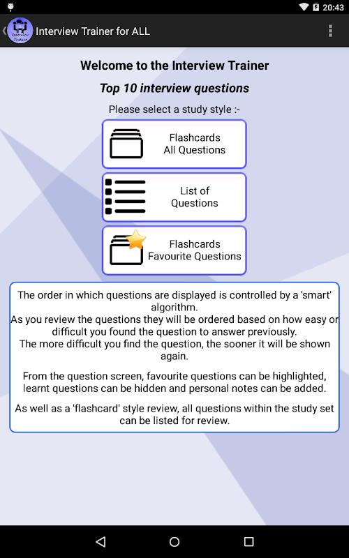 Interview questions, hints and tips PLUS the STAR Timer interview trainer.