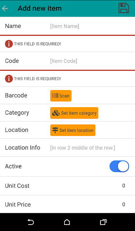 This Inventory app doesn't need any additional hardware or software to manage your inventory. Just with an android smart phone / tablet you run the business.