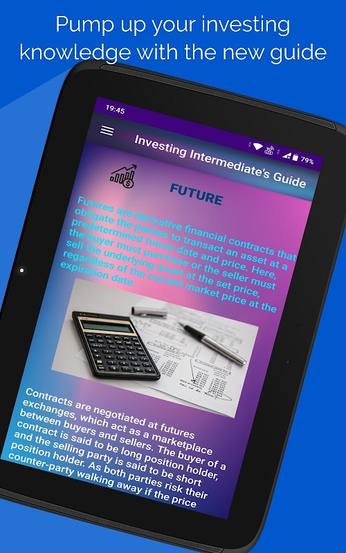 This app provides Intermediate Level information related to investing and other terms. This will teach you many new things also continue some topics from the previous app 'INVESTING BEGINNER'S GUIDE'.
