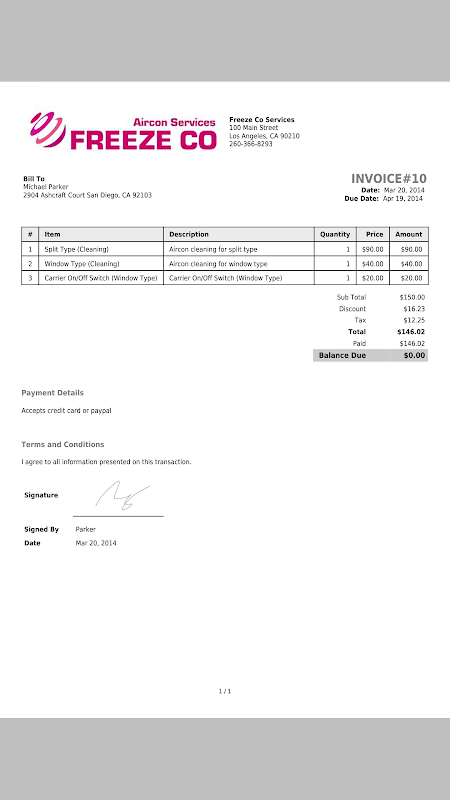• capture la firma de su cliente y coloque la factura