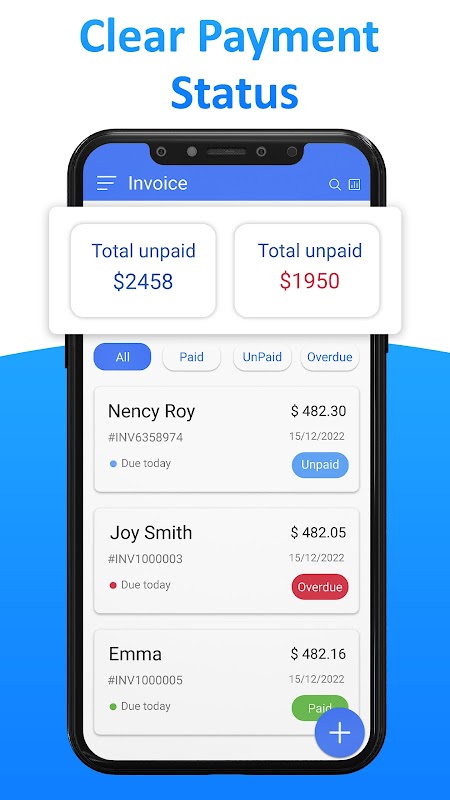 Simple Invoice es el mejor fabricante de facturas. Esta plantilla de factura y aplicación móvil están diseñadas para pequeñas empresas, contratistas y autónomos. Facilitan la creación, el envío y el seguimiento de facturas y presupuestos. Reciba pagos más rápidamente administrando toda su facturación desde su dispositivo móvil. Proporcione a su cliente un presupuesto o una factura antes de dejarlo.