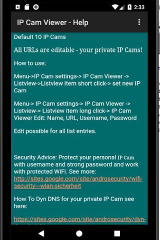 El mundo es maravilloso. ¡Viajar alrededor del mundo! Puedes visitar el lugar de tus sueños casi gratis y en vivo. La aplicación no recopila ningún dato. Lea la ayuda y utilice la función de edición para acceder a cualquier número de cámaras web. La IP Webcam pro permite un número ilimitado de cámaras web. Si tiene algún problema, informar a