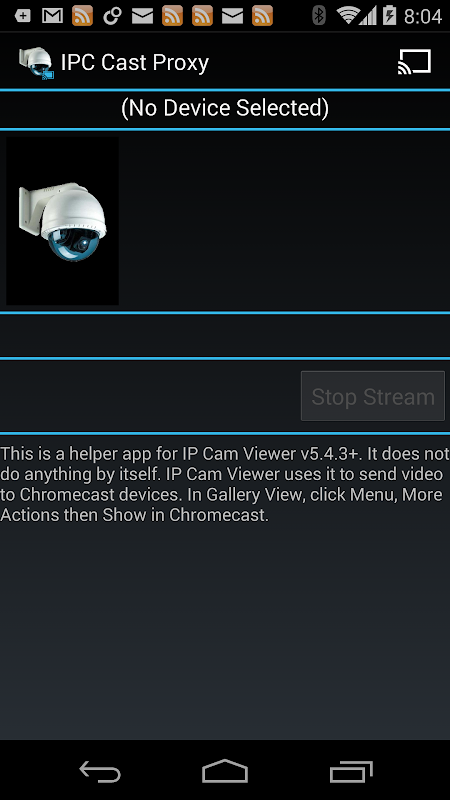 No hace nada por sí mismo. IP Cam Viewer utiliza para enviar vídeo a dispositivos Chromecast.