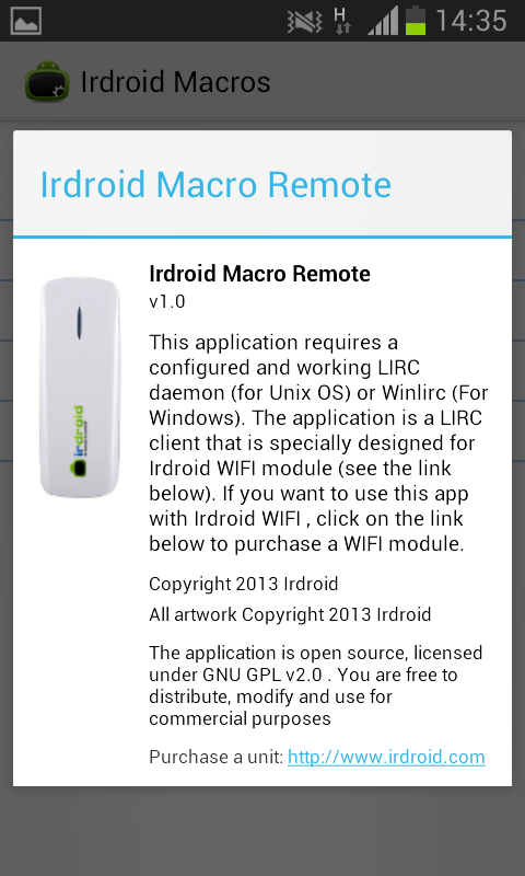 The application is open source, licensed under GNU GPL v2.0 . You are free to distribute, modify and use for commercial purposes. You can read more about this application by visiting http://www.irdroid.com .