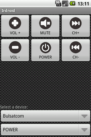 Convierte tu teléfono en el mando a distancia por infrarrojos para TV, STB o DVD, lo que permite controlar varios dispositivos de infrarrojos a distancia. Usos y necesidades de aplicación externa Irdroid Module.This no se puede utilizar sin módulo Irdroid. Usted puede comprar un módulo Irdroid ahora con Bitcoin :)