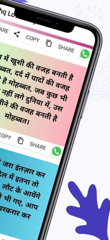 Esta aplicación es el lugar adecuado para Especialmente रोमांटिक शायरी en todas las categorías Best in class como Romance, Miss you Shayari, Pyar Shayari, Mohabbat Shayari, Propose Shayari, etc.