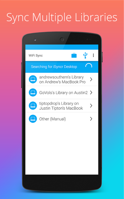 ¿Quieres dejar de llevar el teléfono y el iPod? Mantenga su música fresca con listas de reproducción inteligentes? iSyncr le permite sincronizar rápidamente su dispositivo Android con la música que tengas en iTunes usando iSyncr de escritorio a través de USB o WiFi. No hay necesidad de mover su música en un nuevo software de gestión de música. iSyncr trabaja directamente con iTunes para que puedas sincronizar sin problemas.