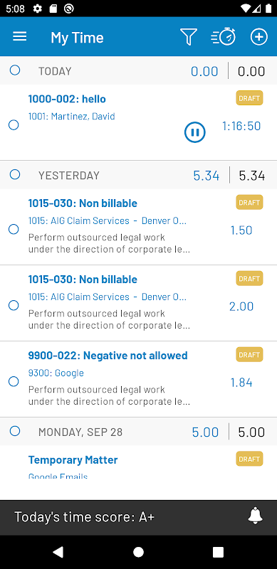 Bienvenido a iTimekeep, la aplicación de entrada de tiempo que a los abogados les encanta usar.