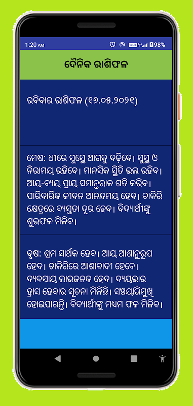 Esta es una aplicación de calendario, esta aplicación es muy útil para la gente de Odisha y todas las personas de Oriya que viven fuera de Odisha. Con esta aplicación podemos conocer las fiestas de nuestra Odisha y algunas fiestas nacionales.