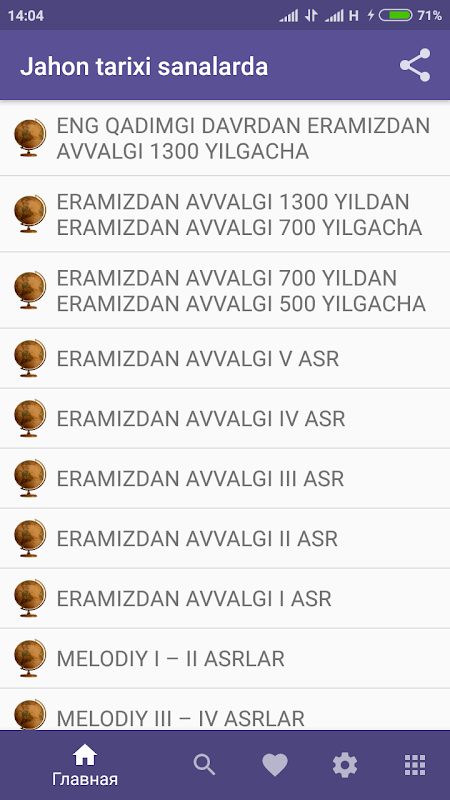 O'zbekiston Tarija, Tarija zhaҳon, Alejandro Magno, Iskandar Zulқarnayn, Қadimgi Grecia, Қadimgi Misr, Mesopotamia, Cartago, Beruni, Avicena, Faroby Umar Ҳayom, Қadimgi Jorezm, Chingizhon, Yetti