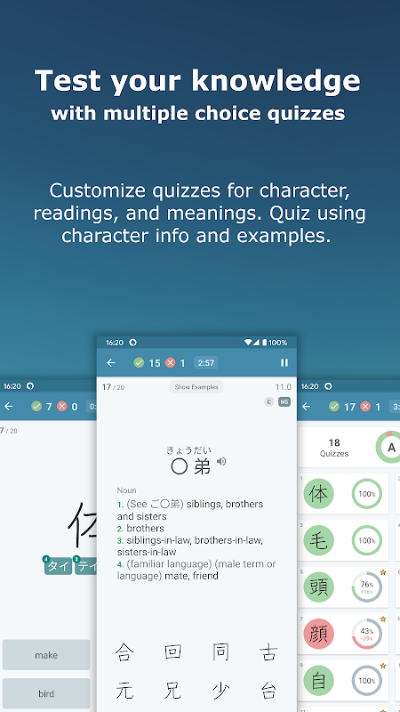 • Visualiza trazos animados, lecturas y significados así como tu tiempo de estudio y estadísticas de tus tests.