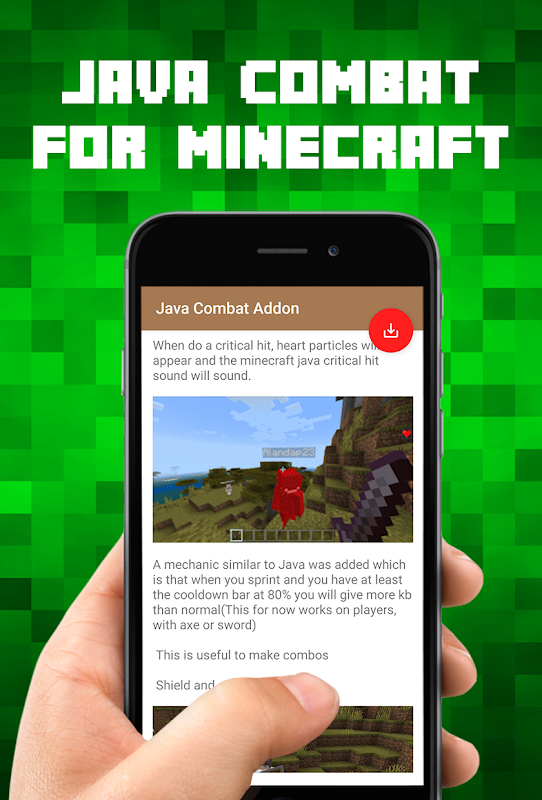 Esta aplicación Java Combat Mod para Minecraft PE lo ayuda a descargar e instalar "Raiyon's Java Combat Addon" en su juego Minecraft Pocket Edition. Olvídese de todos esos File Explorer o BlockLauncher, y haga las cosas más rápido y más fácil con nuestro instalador de 1 toque.
