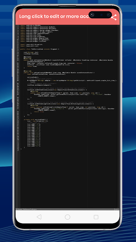 --> Long press the java code.