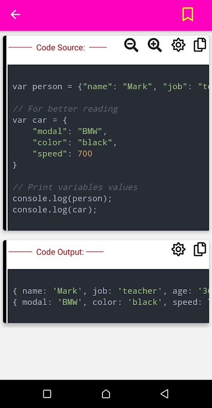 Esta aplicación te ayudará a aprender JavaScript a través de ejercicios y programas, estudiarás variables, funciones, fecha y hora, clase y objetos, archivos JSON, cadenas, métodos y más.