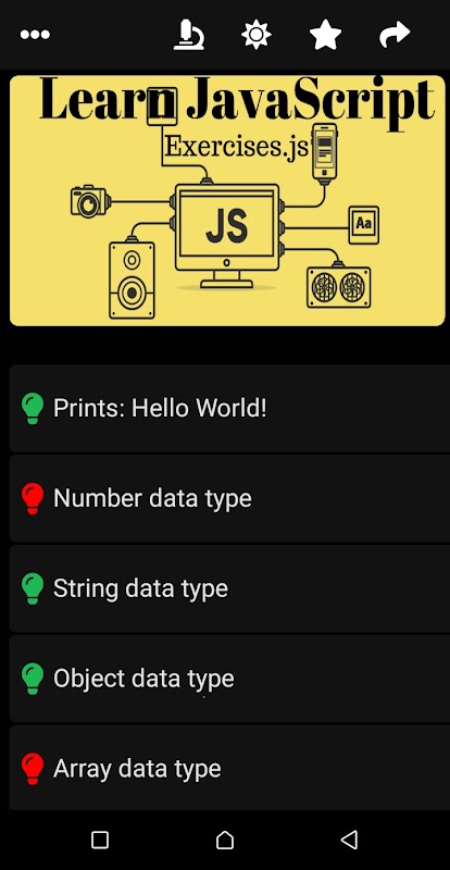 Esta aplicación puede ayudarlo a aprender el lenguaje JavaScript mediante ejercicios.