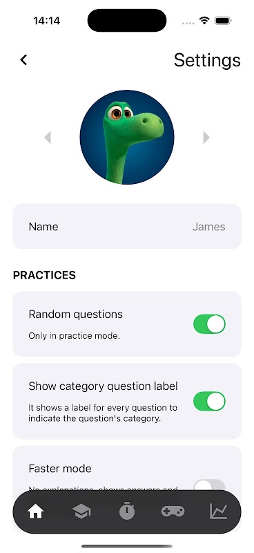 - Modo Examen, una simulación real del examen oficial: 30 preguntas en 40 minutos.
