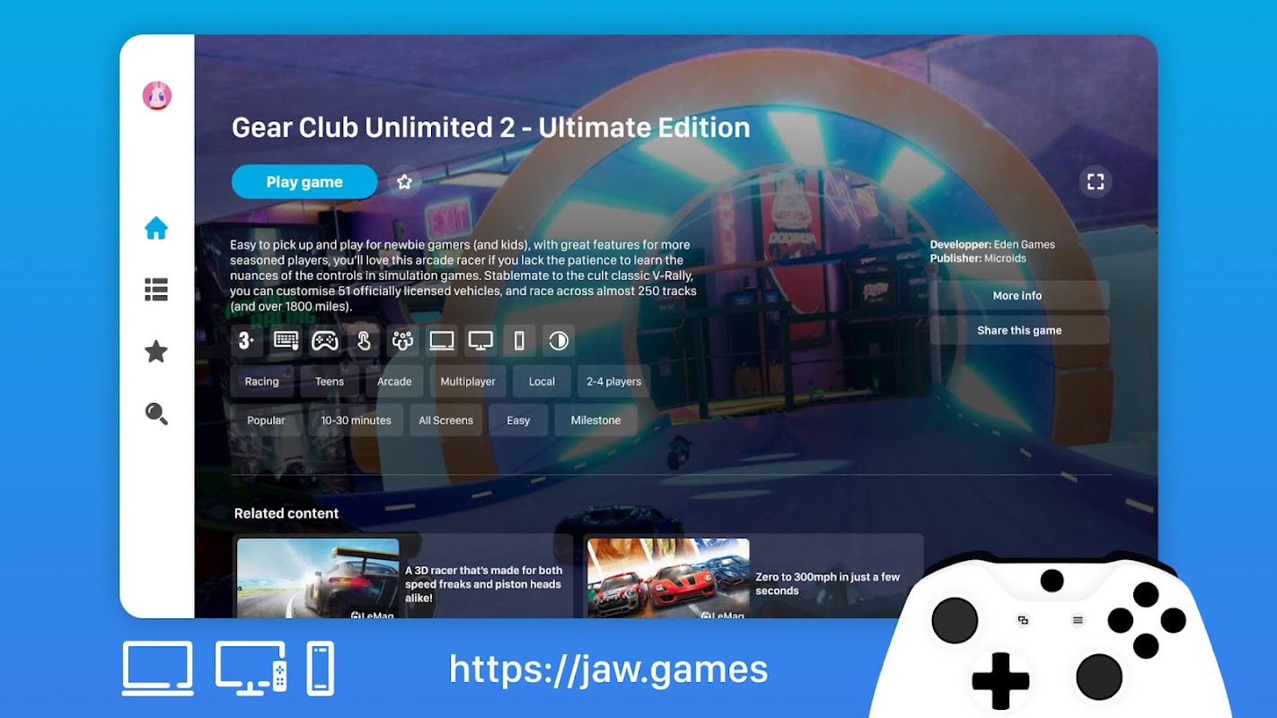 • Una suscripción a Jaw Games le brinda acceso a una selección ilimitada de videojuegos por un precio reducido. Elija entre planes diarios, semanales o mensuales.
