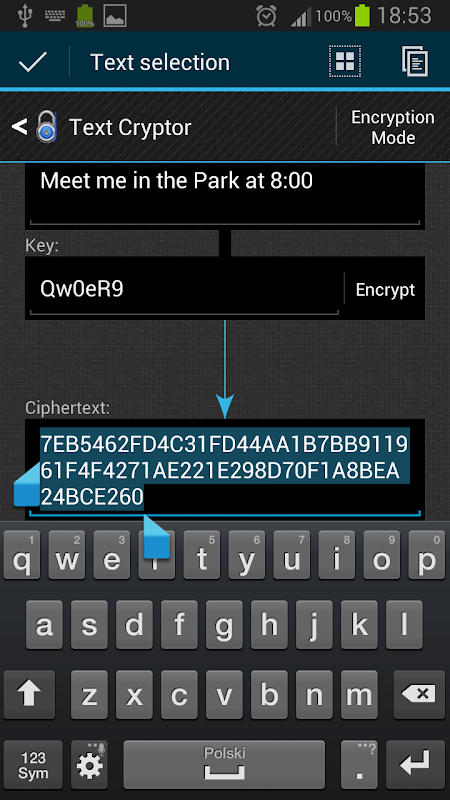 This application allows you to encrypt and decrypt the text data using given key. Outgoing ciphertext can be transmitted through any communication media, for example text messages, emails or chats. The algorithm in use is immune to linear and differential cryptanalysis and uses a mode that prevents frequency analysis. Outgoing ciphertexts are virtually impossible to break. Brute-forcing a single message would require a very time-consuming attack with millions years of uninterrupted computing. This app gives you the power of secure data transmission. You decide how you use it.