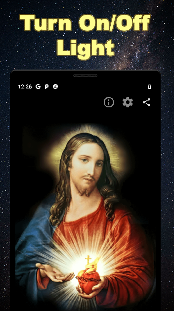 La aplicación utiliza una linterna que da una presencia divina con una pieza de música suave de fondo, que le da el resplandor de Jesucristo.
