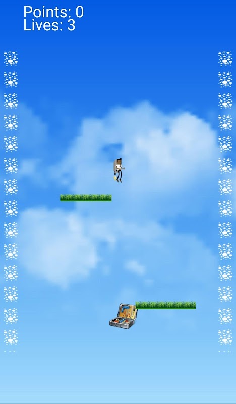 Jetpack Jack is in Trouble!! Poor Jack, his Jetpack has broken Down. Help him grab his tools as he makes his way back to the ground, making sure to land on the platforms. But be careful of the other obstacles, and Don't forget to Grab him a Snack as he makes his way down!!