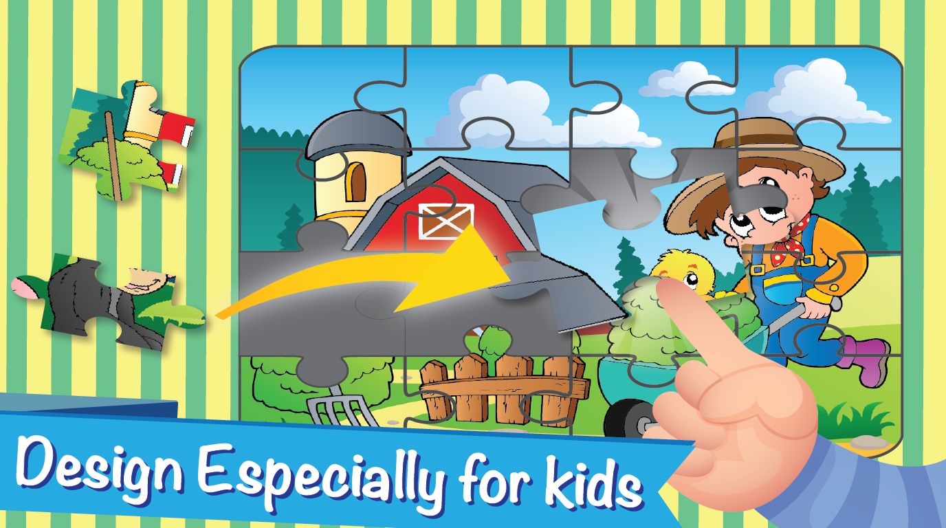 Have a good happy time in the big farm game app playing with learning about cool jigsaw of different pictures image puzzle. With the easy to use interactive tap on piece and drop on board to complete kids jigsaw puzzle of offline games for kid. A super fun screen kid cartoons famous and addict games.