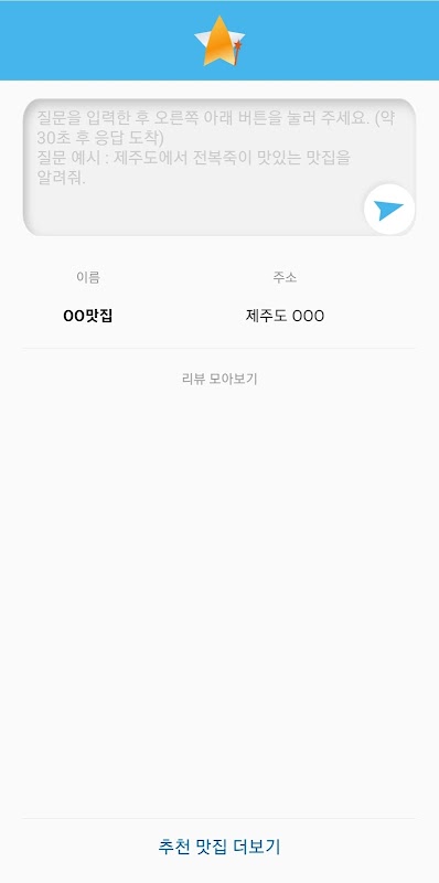 Esta aplicación analiza las preguntas del usuario con IA y recomienda los mejores restaurantes en la isla de Jeju que se adapten a la intención del usuario.