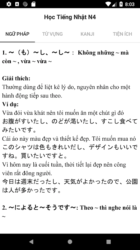 Información de JLPT N4 - Luyện thi jlpt n4 ngữ pháp APK