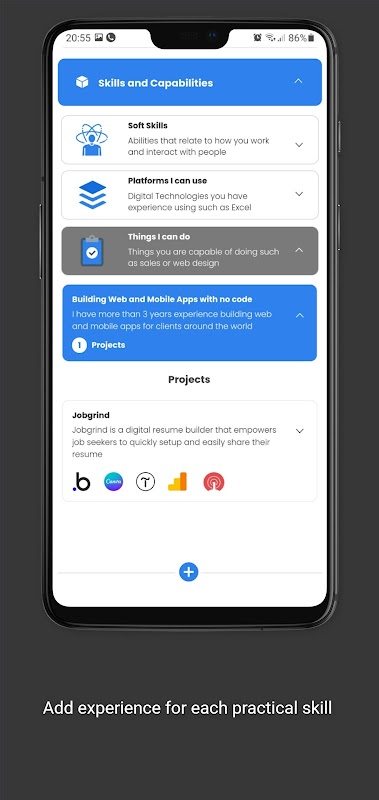 La plataforma está diseñada de manera que permite al usuario decidir cuánto quiere compartir sobre sí mismo, desde una simple experiencia laboral hasta los detalles de los proyectos en los que ha estado involucrado, las habilidades que tiene y las plataformas que puede usar.