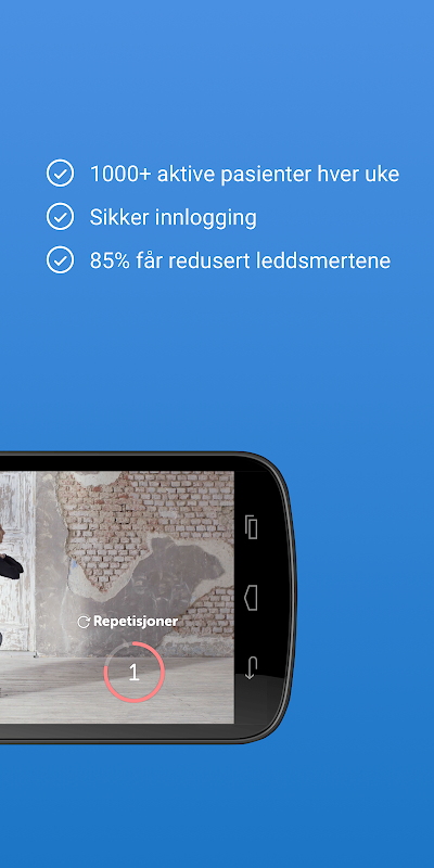Minsk din leddverk med 5 minutters trening om dag! Behandle din hofte- og kneartrose med et personlig treningsprogram. Hele behandlingen er kostnadsfri med frikort, pasientavgift for de konsultasjoner du har med din lege eller fysioterapeut kommer utenom. Du får diagnose av ortoped, veiledning av fysioterapeut og interaktiv utdannelse om artrose og generell helse.