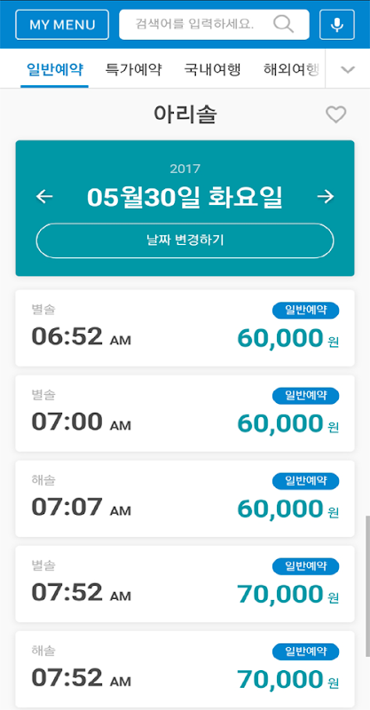 - 스마트검색: 다양한 검색 조건으로 스마트하게 예약하기