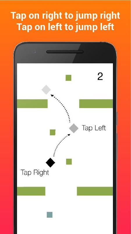 Al pulsar sobre la mitad derecha de la pantalla, el azulejo avanzará a la derecha, en caso de tocar el lado izquierdo de la pantalla, el azulejo se recorrerá a la izquierda. Es muy sencillo, lo único que deberás hacer es elevarte lo más que puedas.