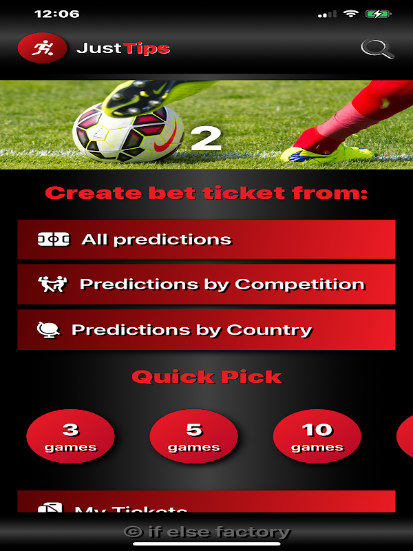 ¡Esta aplicación no es una aplicación de apuestas deportivas! La aplicación ofrece predicciones de resultados que pueden agruparse en forma de una variante solo para una mejor visualización de la selección realizada y no tiene valor material y no representa la inscripción o participación en ninguna actividad que pueda generar ingresos o ganancias financieras.