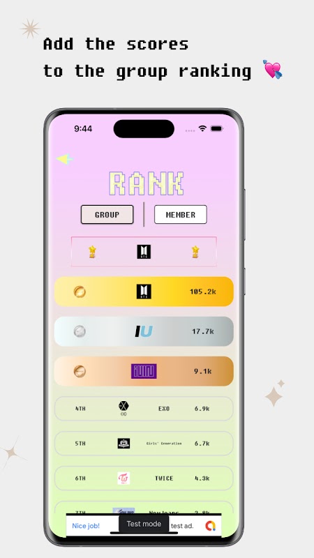 - ¡Si logras la puntuación más alta, el Salón de la Fama se llenará de fans ídolos del mes!