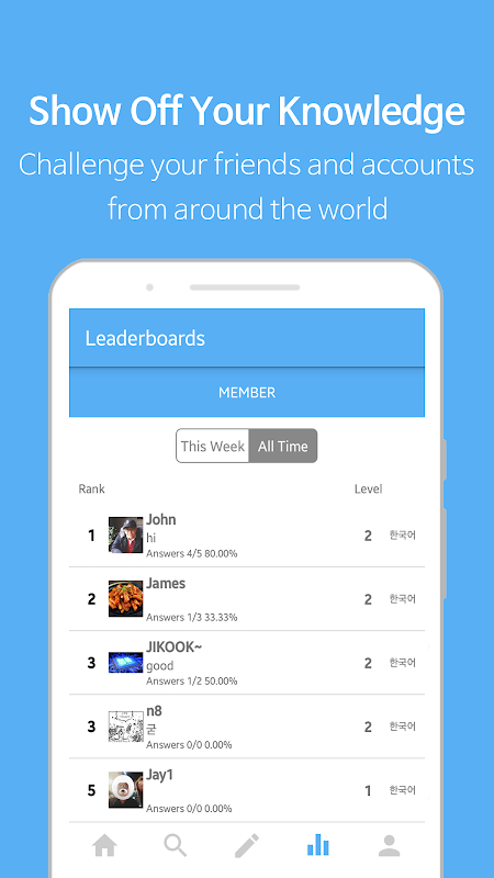 Comparta sus propios cuestionarios con los fanáticos de K-Pop de todo el mundo.