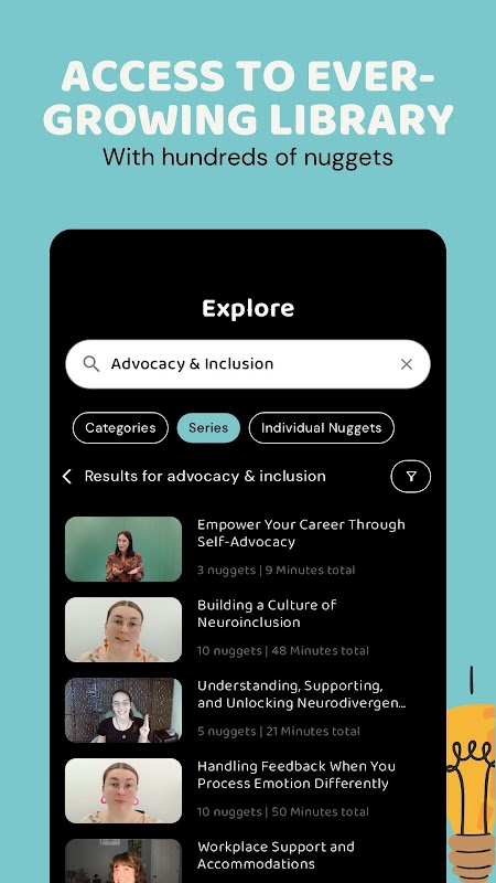 Sesiones breves y prácticas diseñadas para ayudarte a comprender conceptos como la concentración, la energía, el estrés, el trabajo y las relaciones.