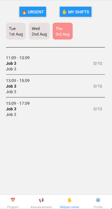 La aplicación muestra noticias de eventos, anuncios y muestra turnos donde las personas pueden ayudar, si lo desean.