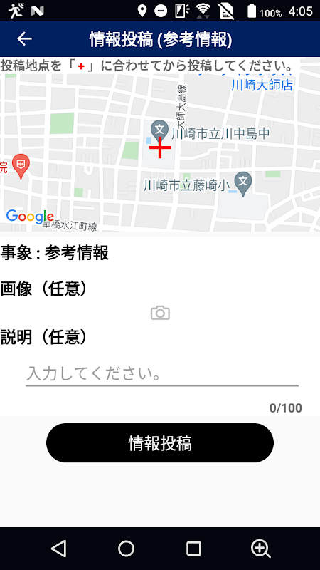 避難訓練において、被害が起きていると想定された地点に遭遇した方は、本アプリを使って、地域のみんなと情報を共有しましょう。