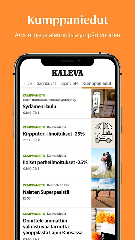 En la aplicación Kaleva, también encontrará revistas visuales de Iijokiseudu, Pyhäjokiseudu, Rantalakeuse, Siikajokilaakso y Forum24.