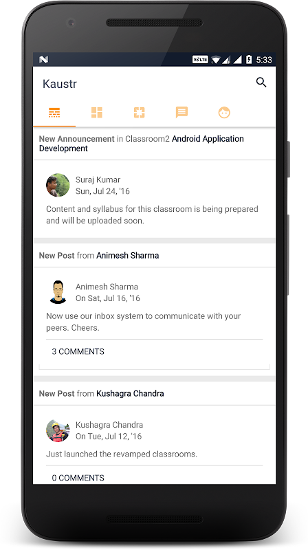 Kaustr es un herramienta de gestión de aprendizaje para profesores y estudiantes . Esto ayuda en la gestión de los recursos, la automatización de tareas y una mejor comunicación entre pares.