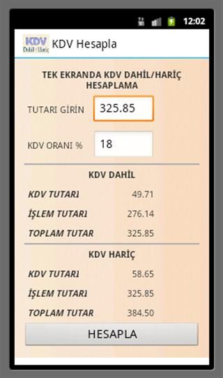 Acerca del KDV Hesapla - kdv dahil hariç
